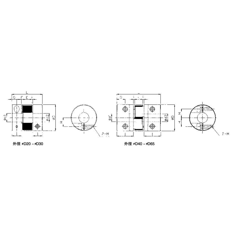 | 型號 | D | I | L | E | F | G | H | M | d1xd2 標準孔徑 公差(H8) | Mass 質量 (g) | |